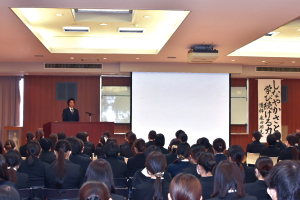 講演を聞いた板橋咲希さんは「『小さな達成を積み重ねる姿勢』を大切にし、努力を重ね、4月から看護師として成長していきたい」、千代谷心路さんは「成功より成長を大切にし、自分を理解しながら周囲の力を借りて前に進むことの大切さを学びました。経験を力に変え成長していきたい」、山口琢也さんは「成長のため小さな課題を繰り返すことやチームワークの重要性を学びました。良質な医療を提供するため、日々の自己研鑽と人間関係を大切にしていきたい」と多くの学びを得た様子。
